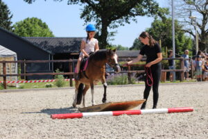 De ponypret groep is een alternatief op de gewone groepslessen voor kinderen die nog geen eigen (verzorg)pony hebben. Tijdens de lessen van de ponypret groep leren de kinderen de beginselen van het paardrijden. Maar ze leren meer dan alleen op de pony zitten! Zo krijgen ze ook les vanaf de grond met de pony. We werken aan vertrouwen en het begrijpen van de onderlinge communicatie. Op de barebackpad oefenen we met houding en balans. Op een speelse wijze krijgen ze meer kennis over de anatomie van de pony en bijvoorbeeld wat hij eet. Geschikt voor alle kinderen die op een diervriendelijke manier ervaring met pony’s willen opdoen.